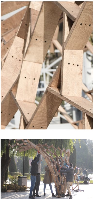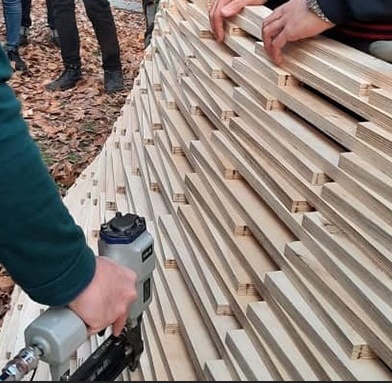 Nexorade structure 18mm plywood CNC cutting Screw assembly Full-scale installation