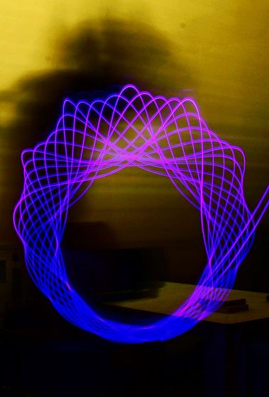 For the first exercise, we defined continuous curve patterns in Grasshopper 3D and used them to generate a robot motion path. After producing the corresponding instructions, we mounted a simple LED on the robot head and captured long-exposure photographs while the robot traced the curves in space.