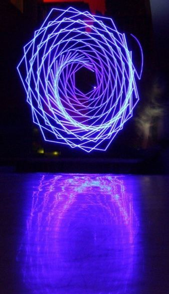 • Light-painted drawings generated from Grasshopper-defined curves and robot motion paths