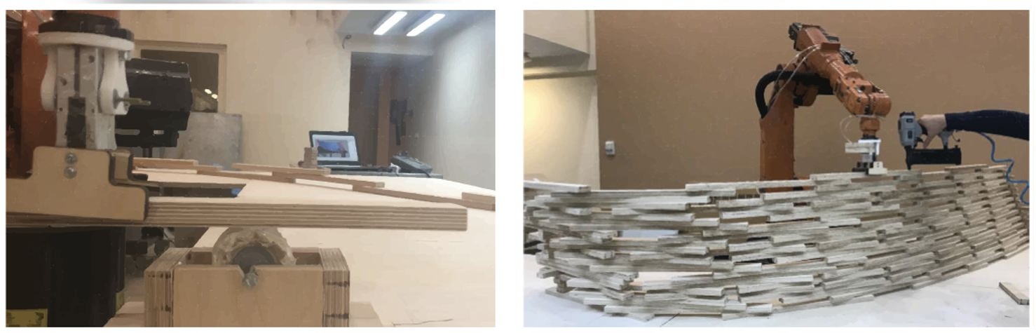 This page collects selected digital fabrication projects that connect computational design with physical making, from robotic toolpaths and pick-and-place experiments to CNC-produced, full-scale plywood structures.